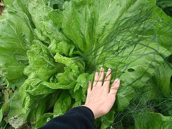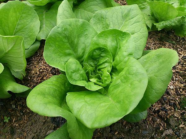 波士頓萵苣葉子厚厚的很飽水 , 看起來就很好吃 , 還沒長大還需要再等等